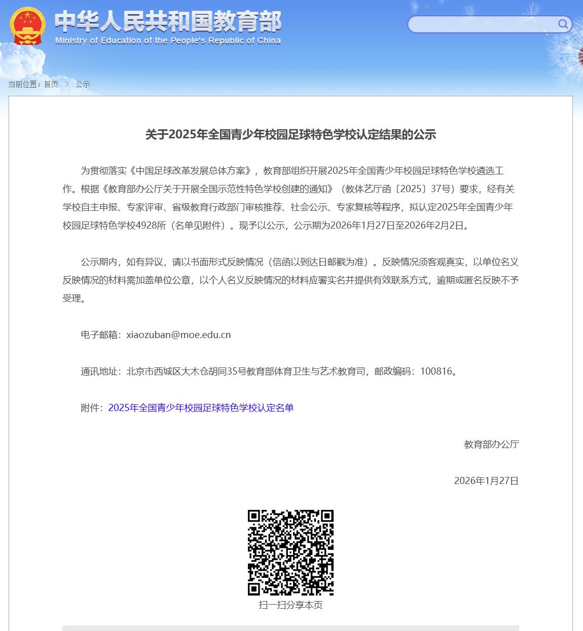 近日,教育部发布《关于 2025 年全国青少年校园足球特色学校认定结果的公示》,拟认定2025年全国青少年校园足球特色学校4928所。其中,陕西142所学校入选,西安入选35所。