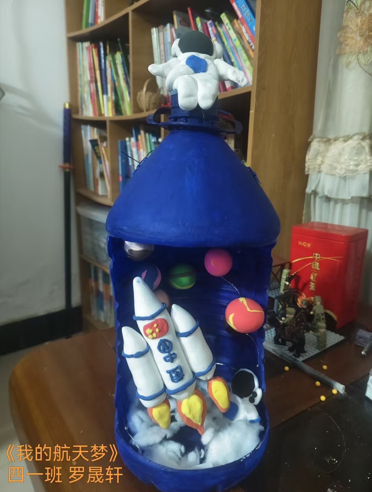 活动特别设立“星辰征途”主题板块,引领学生以太空为卷、创意为笔叩击宇宙之门。纸杯风车转动着航天初心,太阳系模型铺展浪漫星轨;塑料瓶化身精巧空间站模型,彩泥火箭整装待发、逐梦苍穹。这些灵动作品并非静止陈设,而是少年心中科学火种热烈跃动的最美回响。