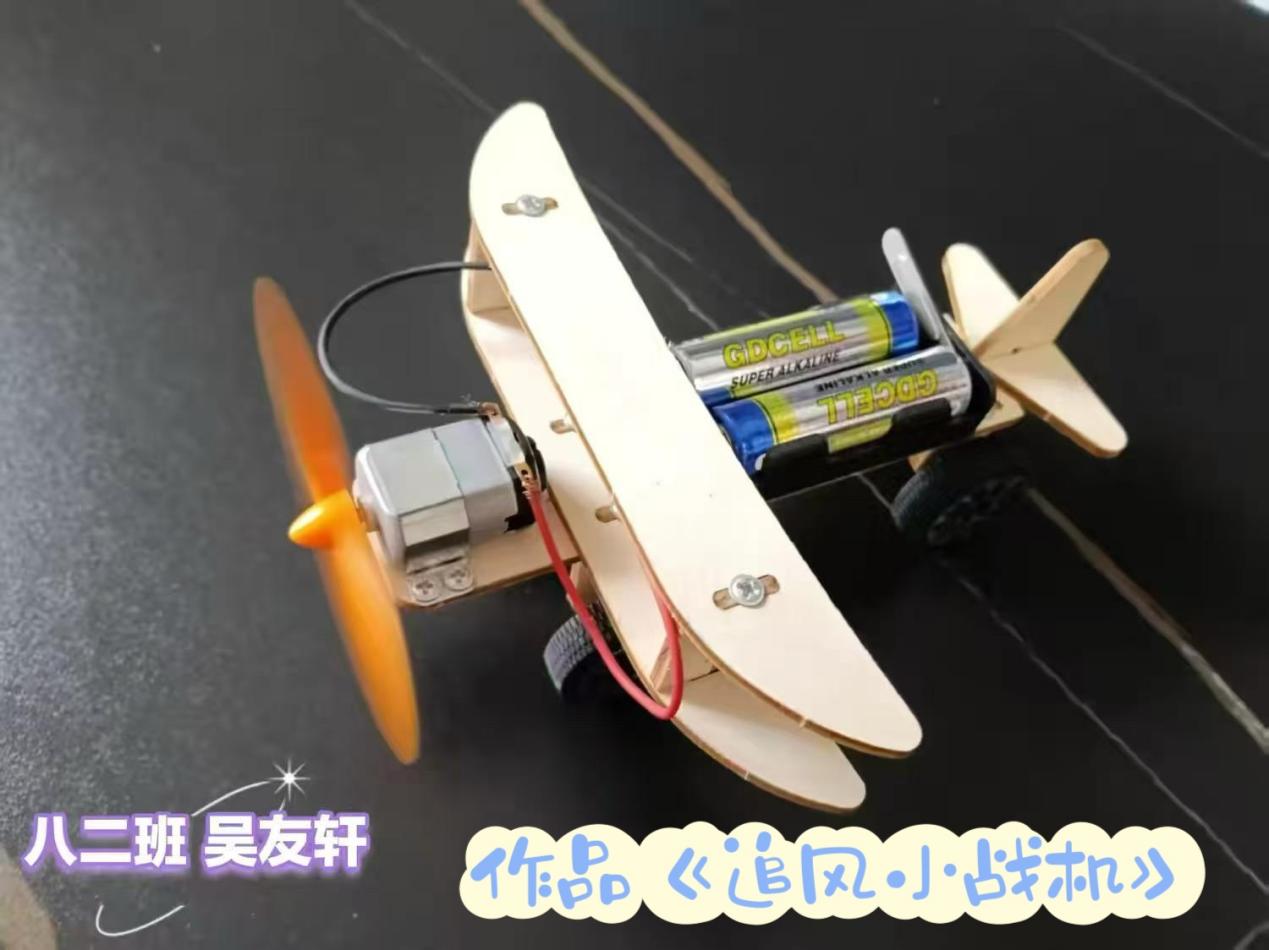 在“智造生辉”环节,学生们深入探索材料特性与能量转化原理。从拼装灵动购物车到胶带缠绕勾勒履带纹路的纸板坦克,从嵌入太阳能板的可开合汽车模型到齿轮精密咬合的积木直升机,再到电池驱动的木质双翼飞机,孩子们在力学平衡与能量转化的探索中,悄然完成从“动手做出”到“明理懂原理”的成长跨越。