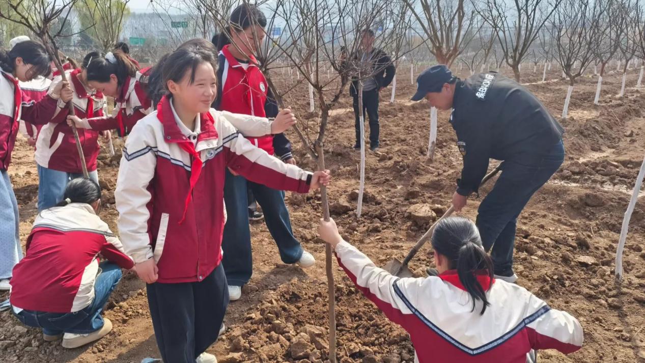 活动当日,学生在德育主任带领下,前往校外劳动实践基地“森林公社”参与植树。基地负责人为同学们讲述了创建初衷,随后大家分工协作,完成了挖坑、栽苗、填土、浇水等工序。