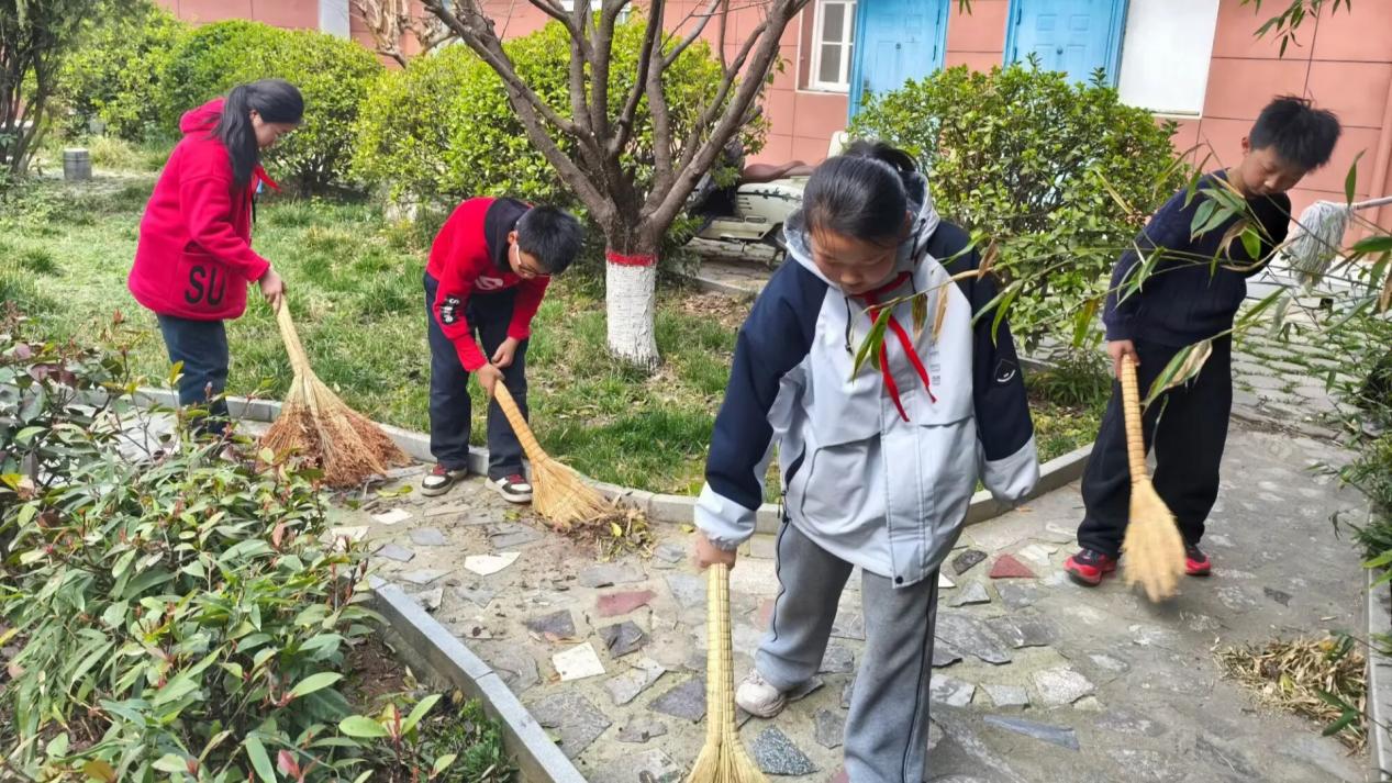 与此同时,校内“护绿小卫士”活动同步开展,学生们对校园绿化带、花坛进行清理、除草和浇灌,通过实际行动维护校园环境。