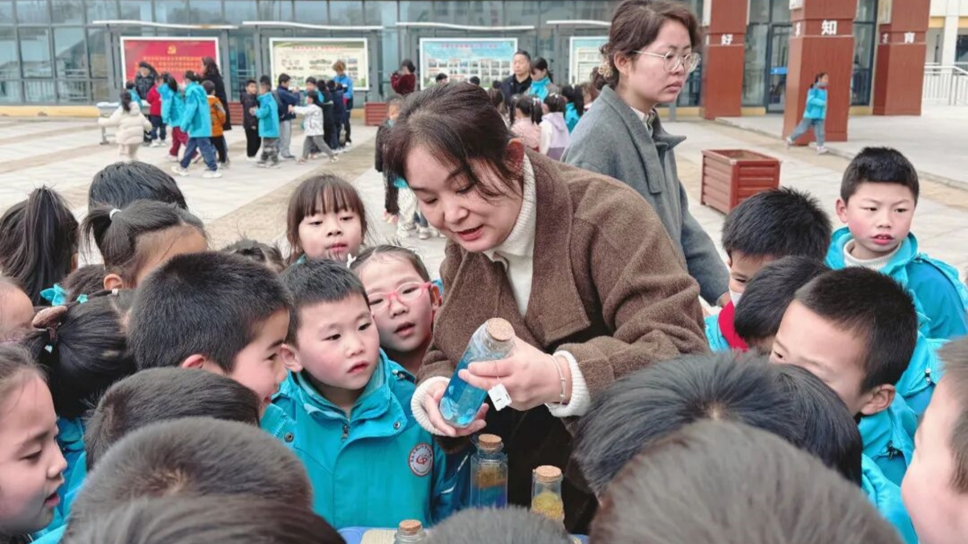 在声学与能量展区,同学们通过推拉“空气柱”奏出高低音调,亲手摇动发电机点亮灯泡,观察“能量回旋器”中小球的持续运动,在互动中深入理解了声波振动、能量转换与守恒定律。此外,“闪电制造机”模拟出震撼的静电放电现象,“吸水树脂”瞬间锁水膨胀,彰显了材料科学的奇妙。